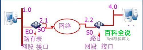 路由器A接收到数据包,查看数据包IP中的目标IP地址,在查找自己的路由表,数据包的目标IP地址是4.1,属于4.0网段,路由器A在路由表中查到4。0网段转发的接口是SO接口。于是,路由表A将数据包从SO接口转发出去。