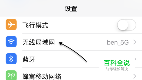 在设置列表里,点击「无线局域网」一栏,如图所示。