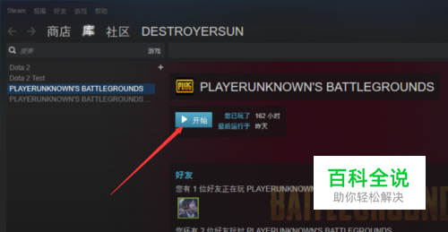 打开steam应用软件,在软件右侧找到绝地求生游戏,然后点击右侧的【开始】,如下图所示。