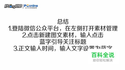 首先登录微信公众平台,在左侧打开素材管理,点击新建图文素材,输入点击蓝字引导关注标题