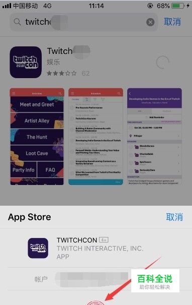 然后需要验证你的身份,需验证app store的密码,如果设置了指纹,可直接验证指纹,验证通过后就可以进入下载了,如图所示。
