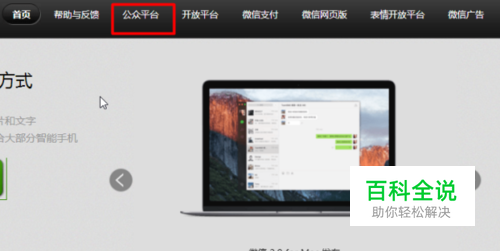 进入微信的官网,如如图界面所示,进入公众平台,登陆自己的微信公众号