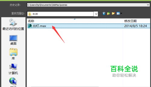 在该界面内按下Ctrl+O键在弹出的对话框内找到我们需要的台灯文件,如图所示: