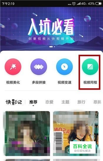 制作同框视频的话可以在快剪辑中完成,在快剪辑中点击顶部位置的【视频同框】功能。