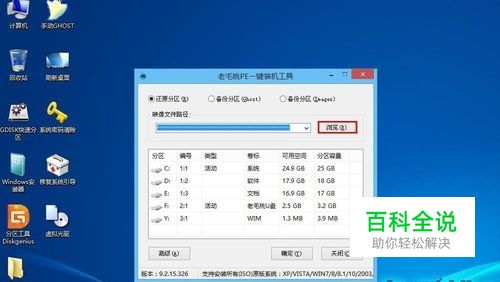 进入pe系统桌面后,打开老毛桃PE装机工具,接着点击“浏览”按钮,如下图所示: