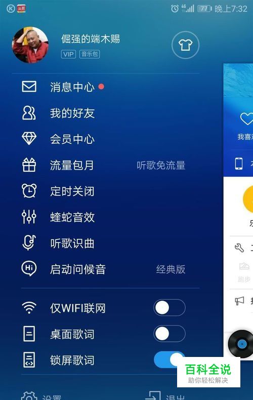 打开酷狗音乐播放器,然后在“设置”中把“边听边存”打开。