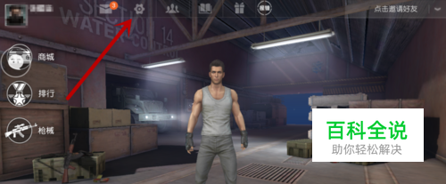 首先我们进入到荒野行动的游戏当中,点击界面上方的齿轮图标,就是设置按钮,如图所示。