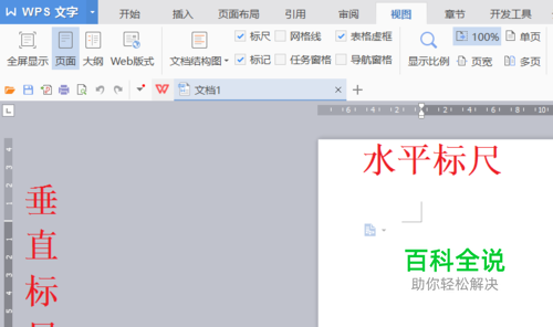 在弹出的选项菜单中“视图”标签栏中选中“垂直标尺”则垂直标尺会显示,取消选择则垂直标尺将隐藏,并点击“确定”以保存设置内容。