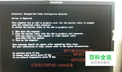 开机后是这个界面,如果不操作就不会进入系统,必须按一下F1后才能进入系统。个人很反感。因为我们这里是解决问题的,所以不要按F1,我们在这里按F2键,其他情况请自行配对。然后进入到下一步