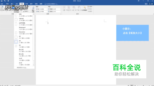 点击“纸张大小”可以选择需要的纸张大小。