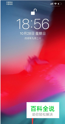 先解锁手机,从屏幕底部向上推滑动屏幕,如下图所示
