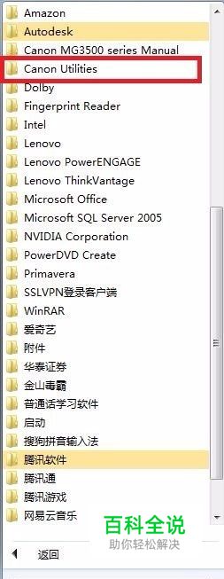 打开电脑“开始”菜单,找到Canon Utilities文件夹。