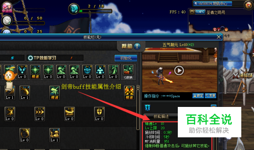 剑帝的核心buff技能为 五气朝元。主要的属性增加角色的攻击速度,移动速度 和暴击伤害。而且随着技能等级的增加,附加的效果更高。技能等级上限20。所以我们主要堆的是buff技能的等级。