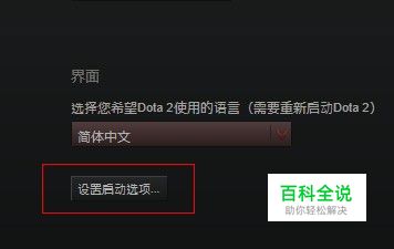 首先,运行Dota2的启动程序。再点击“设置”,在“设置”页面点击“设置启动选项”