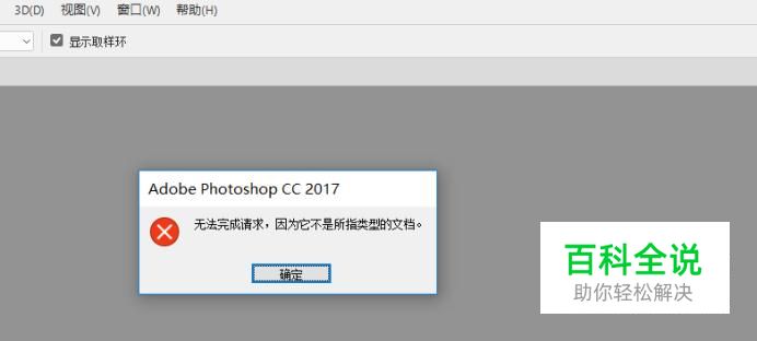 打开Photoshop软件,打开一个文件,文件>打开(快捷键 CTRL O),如下图所示,提示 无法完成请求,因为它不是所指类型的文档