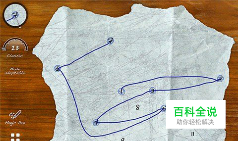 按着这个规则来操作,我们只需用手指在数字之间画出线条,连接它们,就完成任务了。由于手指粗大,无法在某些“狭窄地带”画出精细的线条,游戏界面的左上 角特别安放了一只放大镜,让你能够看清线条的走向和具体的位置,顺利通过狭窄地带。放大镜下方显示的是游戏分值,它将通过你的游戏表现来进行评判。在菜单 和下一关的按钮上方,玩家可以使用强悍的魔法笔(Magic Pen)来辅助游戏。具体用法稍后即见分晓。