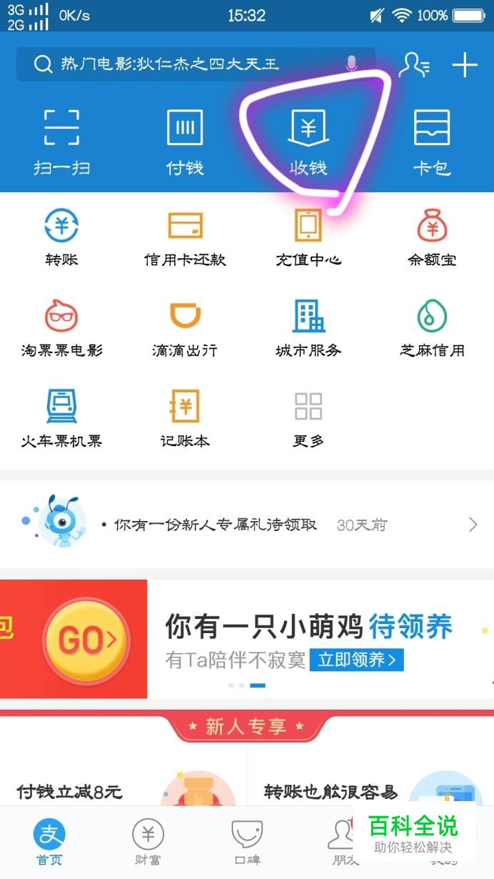 接下来,大家进入首页,点击屏幕上方的“收钱”