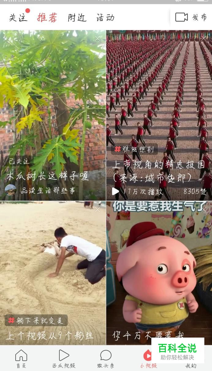 如果你是要下载小视频,那先点击进入小视频,选择你要分享的小视频。点击右下角分享符号。