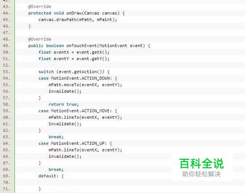 未做任何处理的手写效果: 这是一个自定义的view,通过在onTouchEvent时间中捕获系统回调的触摸点信息,然后再onDraw方法里面刷新,可以明显地感觉到线条很生硬,并且在手写的过程中跟随感很差,反应迟钝,具体代码如下: 通过分析,发现效率低下的原因是: (1)底层回调给onTouchEvent方法中的点太少(单位时间内点信息少导致跟随感差,快速手写时点之间距离过长); (2)捕获点信息后通知View刷新时,刷新不及时(刷新区域太大); 结合查阅的MotionEvent和View的api文档,发现可以从如下两个方向着手来提高手写体验。