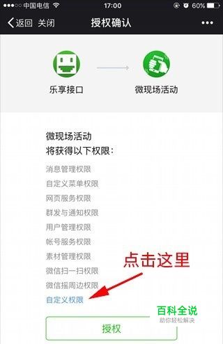 然后扫描授权,请注意,特别注意,不摇点太快,要去掉“自定义权限”,