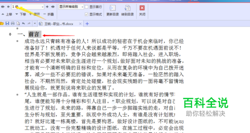 选择二级目录,将选中的文字设置为2级目录。看图。