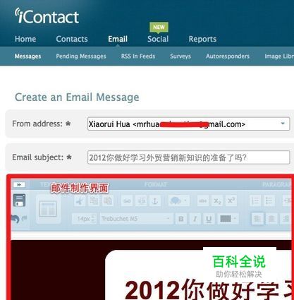制作邮件 选择导航中的Email后,点击Create a Message开始制作邮件