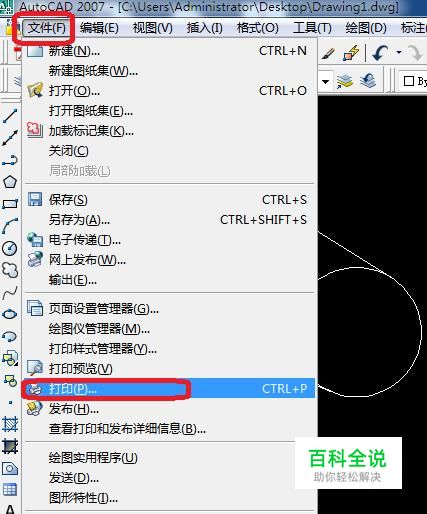 首先,我们打开CAD图形,如图所示,点击“文件”,“打印”。