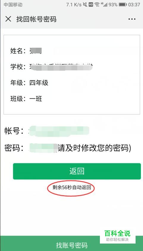 再找到安全作业,点击忘记账号和密码,然后来到一个页面,让你填写真实的资料,在省,市,区,所在学校,所在班级,真实姓名。如图所示。