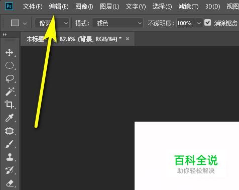 在PS操作界面,鼠标移到上面的菜单栏中,点击:编辑