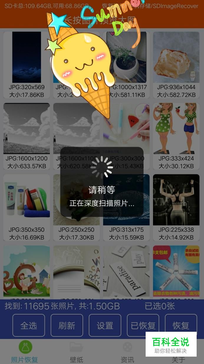 扫描的时间大概会持续几分钟,耐心等待一下,扫描完成后,勾选想要恢复的图片,即可完成恢复。