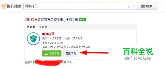 在刷机之前,我们要用到“刷机精灵”这款软件,我们可以在搜狗搜索引擎上搜索下载安装。