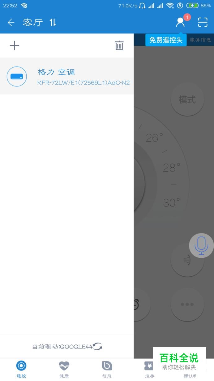 打开遥控精灵,看到左上角有一个三杠线,点击一下,然后点击加号。