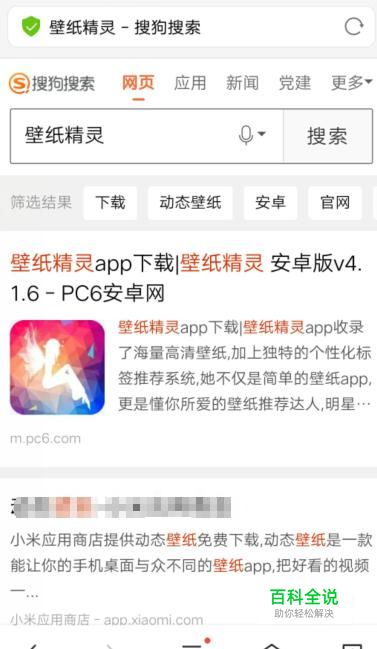 打开搜狗搜索,搜索“壁纸精灵”,将其下载并安装到手机上面,如图所示。