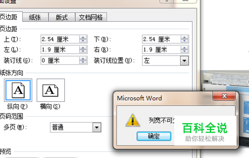 调整页面布局,在页边距正常的情况下出现如下提示。