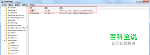 如果以上方法还是不行,就再次打开注册表,注册表编辑器中依次定位至HKEY_CLASSES_ROOT\Excel.Sheet.12\shell\Open\command,按照以上方法再次操作即可。