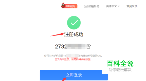 注册成功的页面弹出后我们会看到下面有一串数字,可以记下来,我们下次登录的时候可以直接使用,若是不记得了也可以使用自己注册时填写的手机号登录。