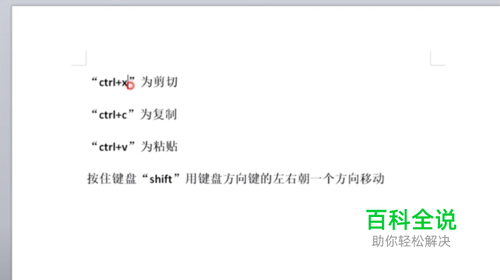 首先需要记住键盘的快捷操作键:“ctrl+x”为剪切,“ctrl+c”为复制,“ctrl+v”为粘贴。