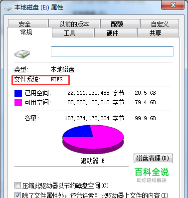 转换成功会有系统提示,可以点击盘符--属性中查看,已经是NTFS格式了,如下图所示