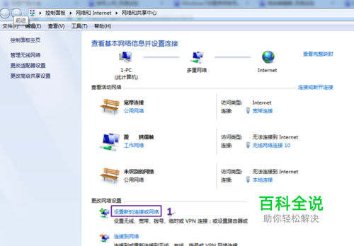 弹出新窗口,在“更改网络设置”选项栏中,点击“设置新的连接或网络“。