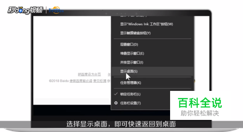 右键单击任务栏,点击显示桌面,即可快速返回桌面。