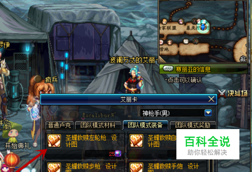 我们要获得圣耀救赎武器,首先需要有设计图,我们在克罗诺斯岛的艾丽卡哪里可以购买对应的设计图,每一个武器都是单独的设计图,我们点击自己要的圣耀救赎武器设计图购买即可,如图所示。