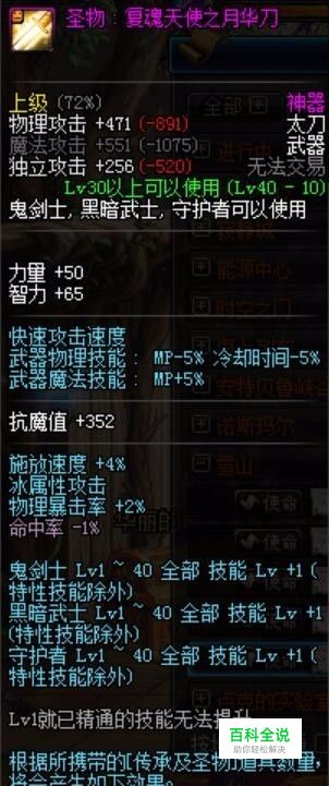 雪山的使命:植物研究-雪山之花 , 完成后送一把神器武器,效果是鬼剑士1-40级技能+1,我们换装需要堆叠的是暴走,所有这把武器用作前期换装是最合适的。