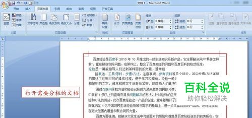 运行Word 2007,打开需要分栏的文档。