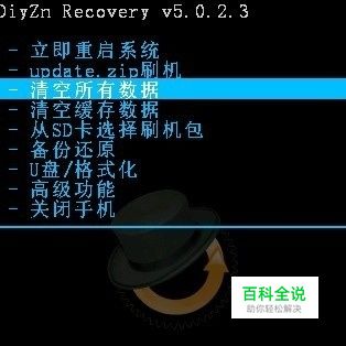 3清空所有数据 利用“音量+”和“音量-”将光标定位到“清空所有数据”项,并按“电源键”或“搜索”键进行确认。在接下来打开的界面中选择“是的,清空数据”并按“电源键”或“搜索”键进行确认。