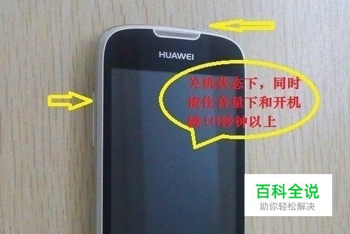 2 进入手机Recovery模式:首先将手机完全关机。然后按特定组合键进入手机Recovery模式。由于不同的手机进入该模式的方法不同,大家可以通过手机说明书或通过网络查找获取详细的帮助。以华为U8650手机为例进行讲解,具体组合键为“音量上”+“开机键”不放,保持5秒钟以上时,进入Recovery界面。