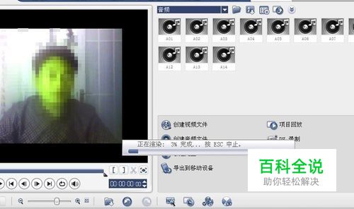 点击菜单栏里分享命令,选择创建视频文件选项,在弹出的对话框中选择mwv(1280*720),找到一个合适的位置进行保存。这样就进行渲染合成视频了,渲染成功后就可以观看视频并试听声音了。