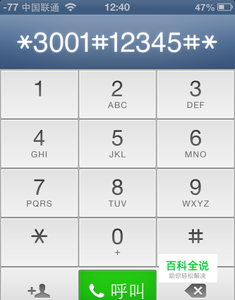 然后,选择底部的“ 拨号键盘”,并在键盘上输入“ *3001#12345#*”,然后点击绿色的“ 呼叫”按钮,如图所示