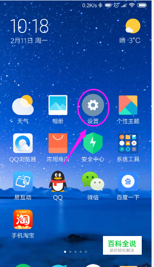 如图所示,在手机桌面上找到设置图标,点击打开。