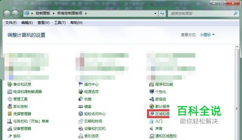 控制面板中选择区域和语言。