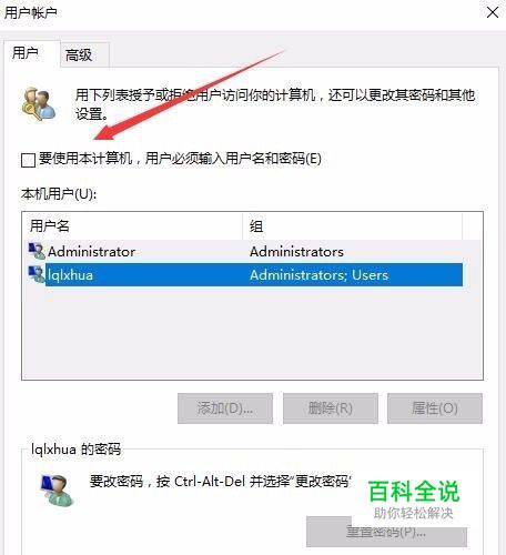 在打开的用户帐户窗口中,选中“要使用本计算机,用户必须输入用户名和密码”前的复选框